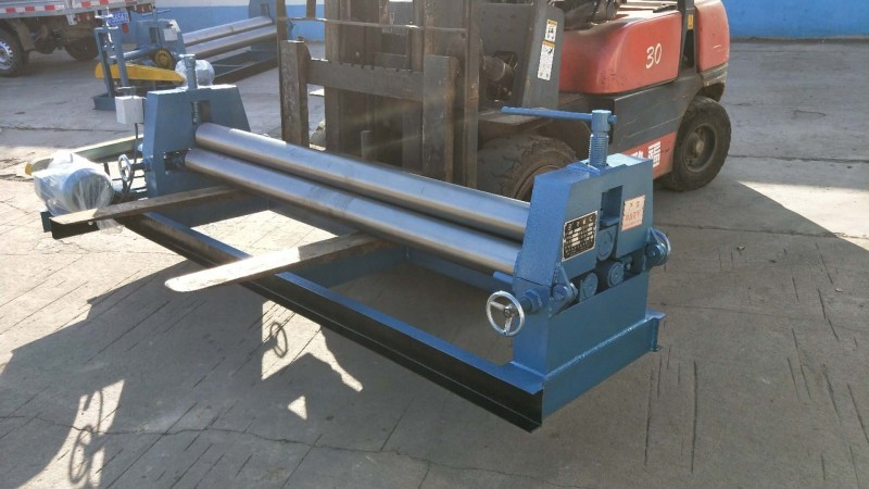 半自动卷板机结构形式为三辊对称式。上辊在两下辊中间对称位置作垂直升降运动,通过丝杠实现上辊的升降,便使所卷制的材料变形,该卷板机是用于金属板材型材弯曲、变型的一种通用设备,它借助于专用工具或其它设备来完成板材端面的预弯,可以卷制圆形、弧形工件,在石油、化工、锅炉、水电、造船、工业设备安装以及机械制造行业中有着广泛的应用。该机器采用倒顺开关(已安装在卷板机上)来实现卷板的正、反转,检查机器无误后,调节丝杠让上辊压至板材表面,把倒顺开关打到“倒”“顺”视现场板材的放入端而定让电动机正转还是把反转,卷制一边后,手动调节丝杠让上辊压紧板材在“倒”“顺”卷制,如此循环直至达至要求为止。